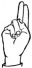 На ћирилици написано ВУКОСАВ ШКРЕБИЋ састоји се из 14 слова [?]. Исписано ћириличном једноручном азбуком за глувонеме: